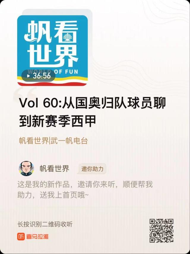 点击下方链接,或登录喜马拉雅搜索“帆看世界”,即可收听节目,和武一帆一起说足球,观天下。