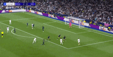 第一球,自开球后到反击皇马仅仅用两次基础的传球机会,库尔图瓦给到巴尔韦德,这球就完事了。曼城的高压逼抢是不是效率太低?对皇马给出这级压力、是不是太自信?